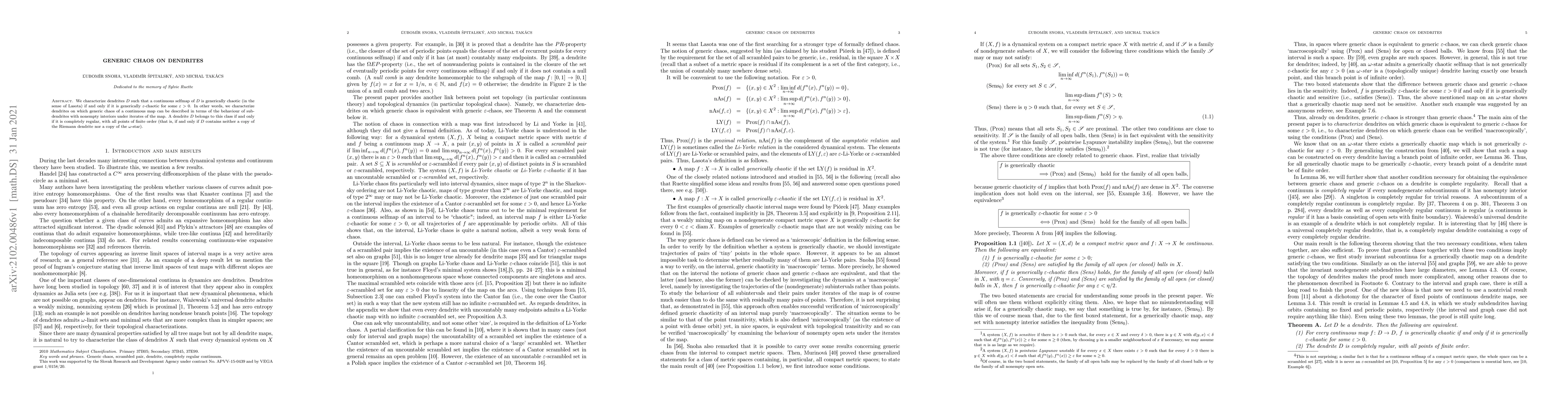 This paper characterizes dendrites where continuous selfmaps exhibit generic chaos if they are generically $\varepsilon$-chaotic for some $\varepsilon>0$. Such dendrites are completely regular with all points of finite order, excluding those with copies of the Riemann dendrite or the $\omega$-star.