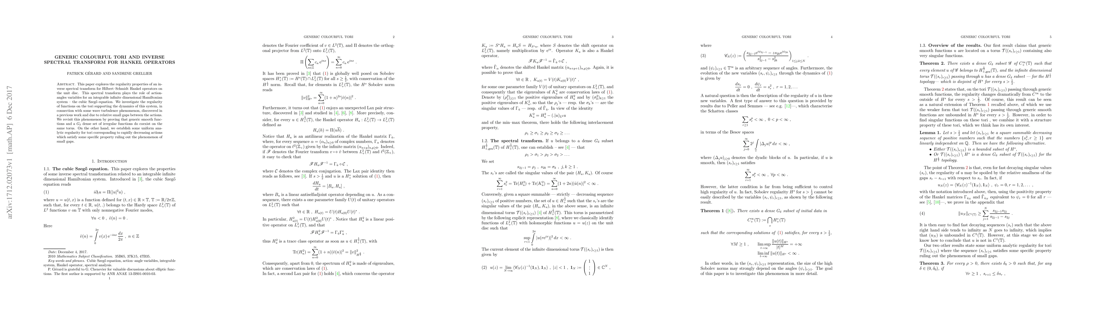 This paper investigates the regularity properties of an inverse spectral transform for Hankel operators on the unit disc, revealing coexistence of smooth and irregular functions on the tori supporting the dynamics of an integrable Hamiltonian system. It also establishes uniform analytic regularity for tori with rapidly decreasing actions, avoiding small gaps phenomena.