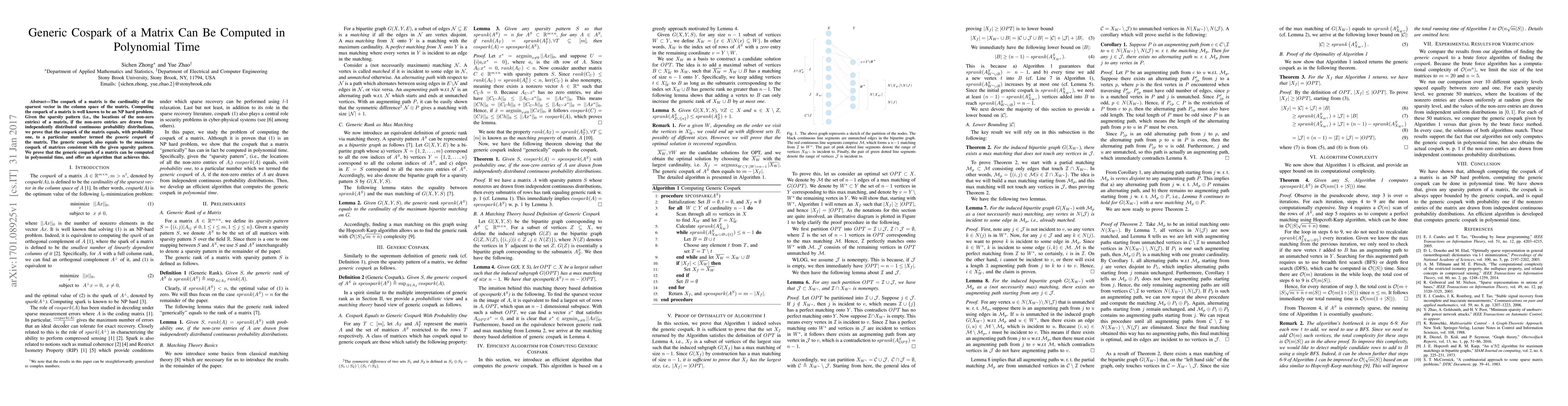 Researchers have developed a method to compute the generic cospark of a matrix in polynomial time, a previously NP-hard problem, allowing for efficient analysis of sparse matrices.