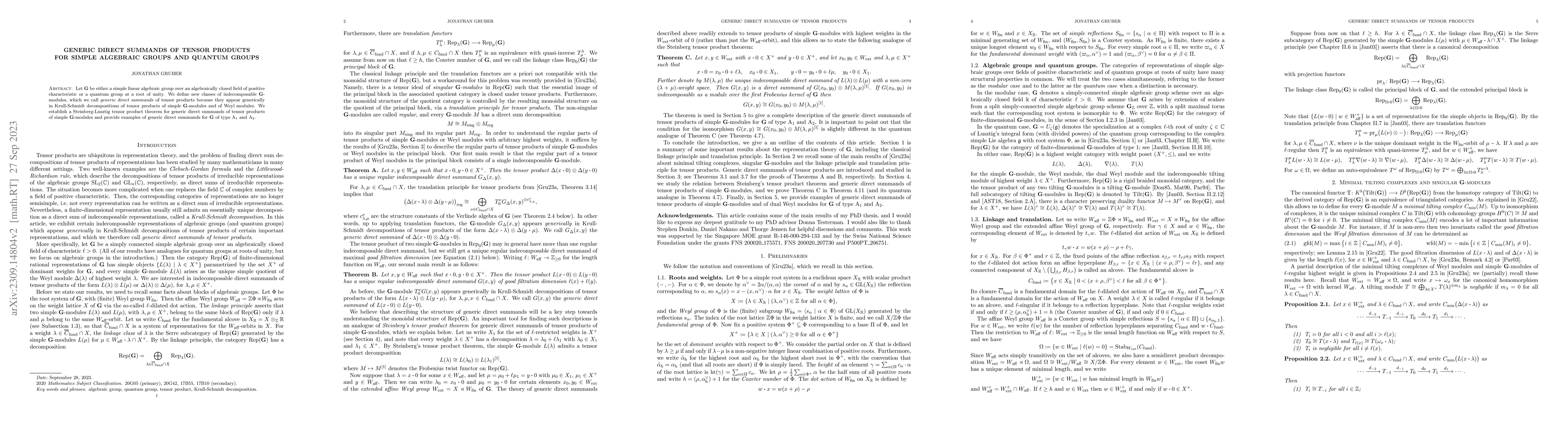 This paper introduces new classes of indecomposable modules called generic direct summands of tensor products for simple algebraic groups and quantum groups, establishing a Steinberg-Lusztig tensor product theorem for these modules and providing examples for types $\mathrm{A}_1$ and $\mathrm{A}_2$.