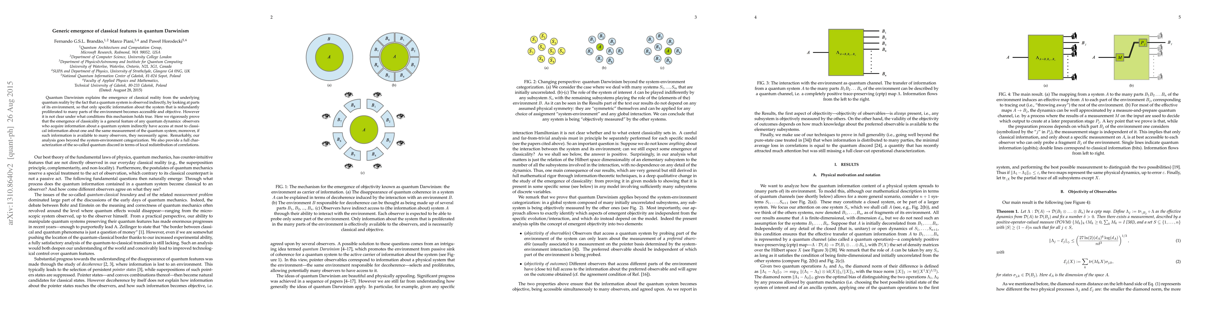 Quantum Darwinism explains the emergence of classical reality from the underlying quantum reality by the fact that a quantum system is observed indirectly, by looking at parts of its environment, so that only specific information about the system that is redundantly proliferated to many parts of the environment becomes accessible and objective. However it is not clear under what conditions this mechanism holds true. Here we rigorously prove that the emergence of classicality is a general feature of any quantum dynamics: observers who acquire information about a quantum system indirectly have access at most to classical information about one and the same measurement of the quantum system; moreover, if such information is available to many observers, they necessarily agree. Remarkably, our analysis goes beyond the system-environment categorization. We also provide a full characterization of the so-called quantum discord in terms of local redistribution of correlations.