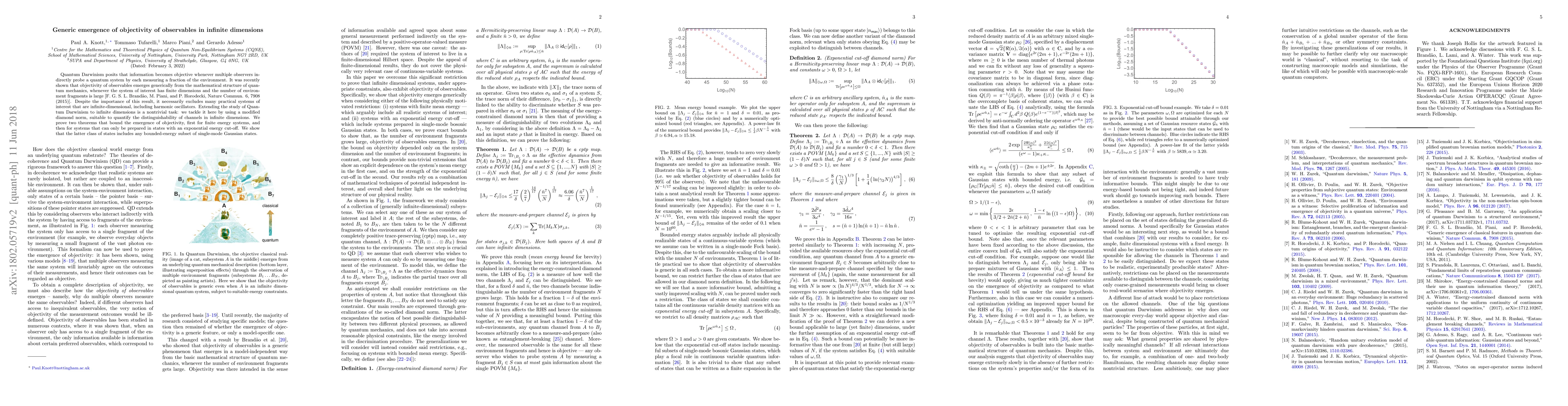 Quantum Darwinism posits that information becomes objective whenever multiple observers indirectly probe a quantum system by each measuring a fraction of the environment. It was recently shown that objectivity of observables emerges generically from the mathematical structure of quantum mechanics, whenever the system of interest has finite dimensions and the number of environment fragments is large [F. G. S. L. Brand\~ao, M. Piani, and P. Horodecki, Nature Commun. 6, 7908 (2015)]. Despite the importance of this result, it necessarily excludes many practical systems of interest that are infinite-dimensional, including harmonic oscillators. Extending the study of Quantum Darwinism to infinite dimensions is a nontrivial task: we tackle it here by using a modified diamond norm, suitable to quantify the distinguishability of channels in infinite dimensions. We prove two theorems that bound the emergence of objectivity, first for finite energy systems, and then for systems that can only be prepared in states with an exponential energy cut-off. We show that the latter class of states includes any bounded-energy subset of single-mode Gaussian states.