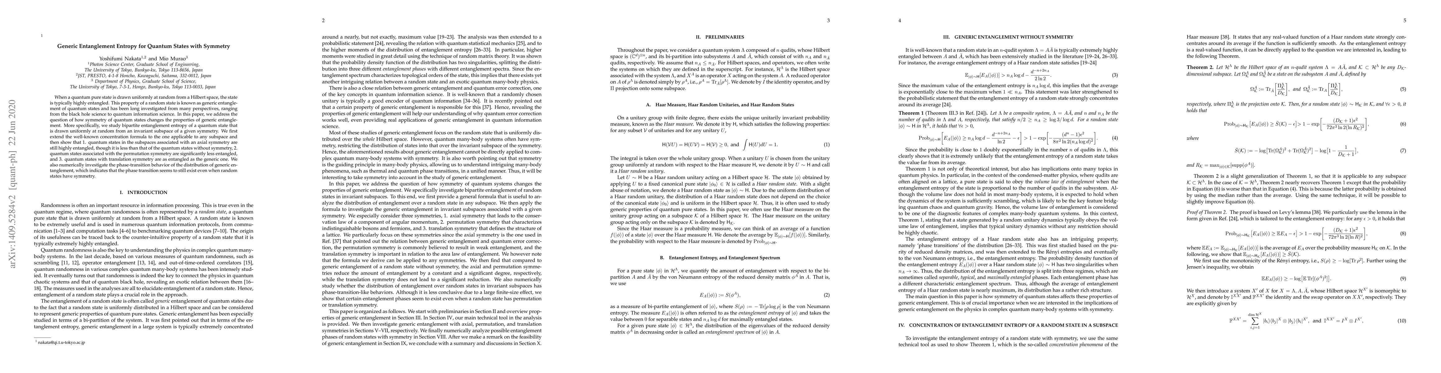 This paper investigates how symmetry affects the generic entanglement entropy of quantum states drawn from invariant subspaces. It finds that axial symmetry reduces entanglement, permutation symmetry significantly decreases it, while translation symmetry maintains entanglement levels similar to non-symmetric states.