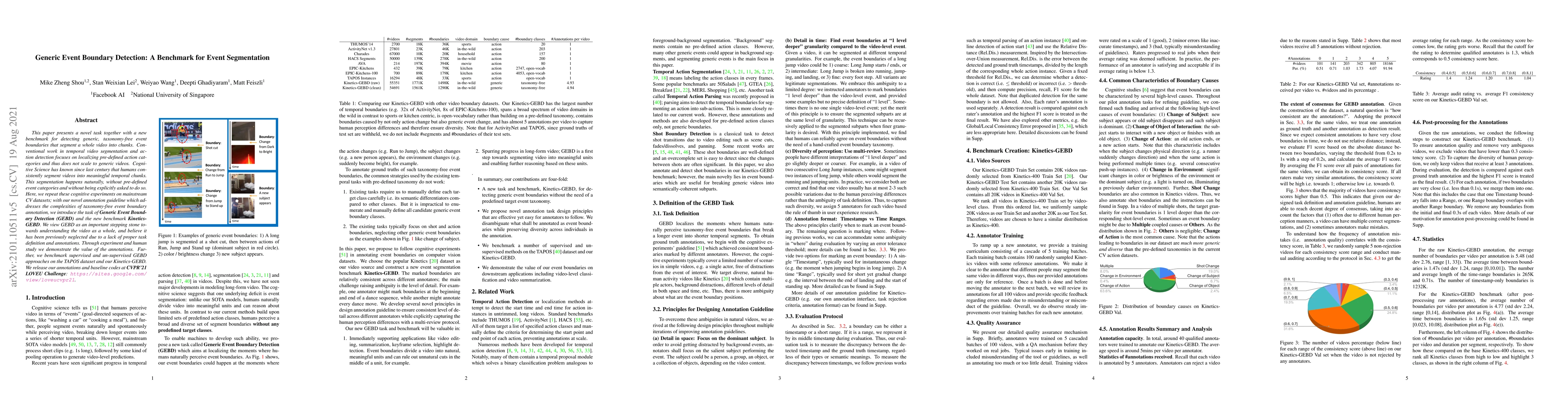 This paper introduces a new benchmark for detecting generic, taxonomy-free event boundaries in videos, termed Generic Event Boundary Detection (GEBD), and presents the Kinetics-GEBD dataset. The authors argue that GEBD is crucial for understanding videos holistically and provide a comprehensive annotation guideline and baseline methods.