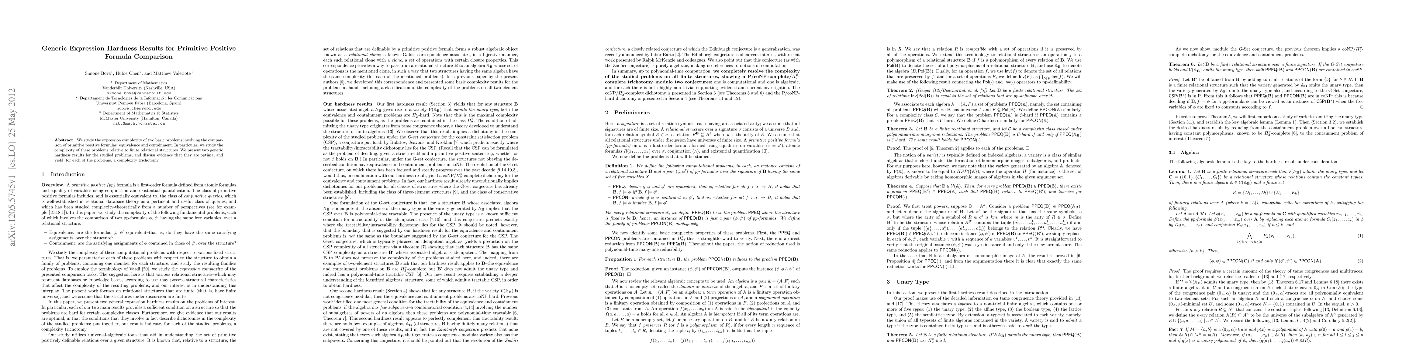 We study the expression complexity of two basic problems involving the comparison of primitive positive formulas: equivalence and containment. In particular, we study the complexity of these problems relative to finite relational structures. We present two generic hardness results for the studied problems, and discuss evidence that they are optimal and yield, for each of the problems, a complexity trichotomy.