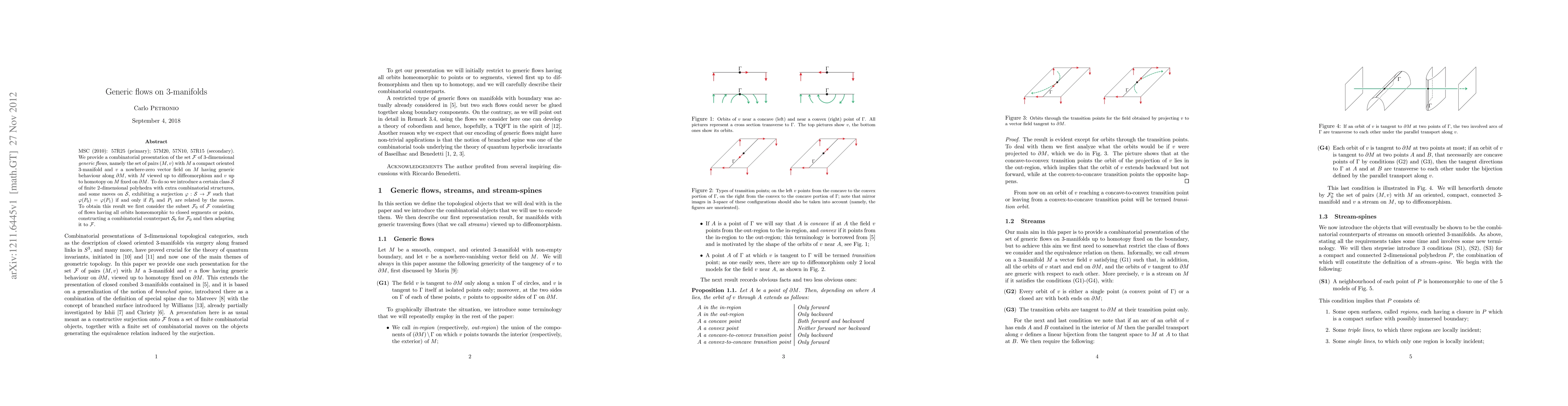 We provide a combinatorial presentation of the set F of 3-dimensional generic flows, namely the set of pairs (M,v) with M a compact oriented 3-manifold and v a nowhere-zero vector field on M having generic behaviour along the boundary of M, with M viewed up to diffeomorphism and v up to homotopy on M fixed on the boundary. To do so we introduce a certain class S of finite 2-dimensional polyhedra with extra combinatorial structures, and some moves on S, exhibiting a surjection f:S->F such that f(P0)=f(P1) if and only if P0 and P1 are related by the moves. To obtain this result we first consider the subset F0 of F consisting of flows having all orbits homeomorphic to closed segments or points, constructing a combinatorial counterpart S0 for F0 and then adapting it to F.