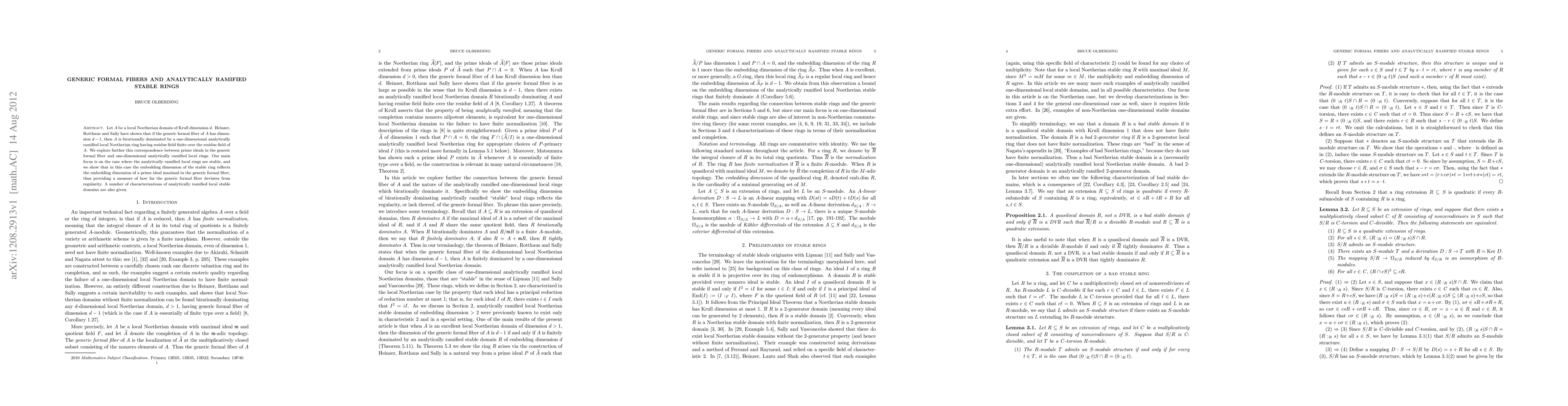 This paper investigates the relationship between the generic formal fiber of a local Noetherian domain and one-dimensional analytically ramified stable rings, showing that the embedding dimension of the stable ring reflects the deviation of the generic formal fiber from regularity. It also provides characterizations of analytically ramified local stable domains.