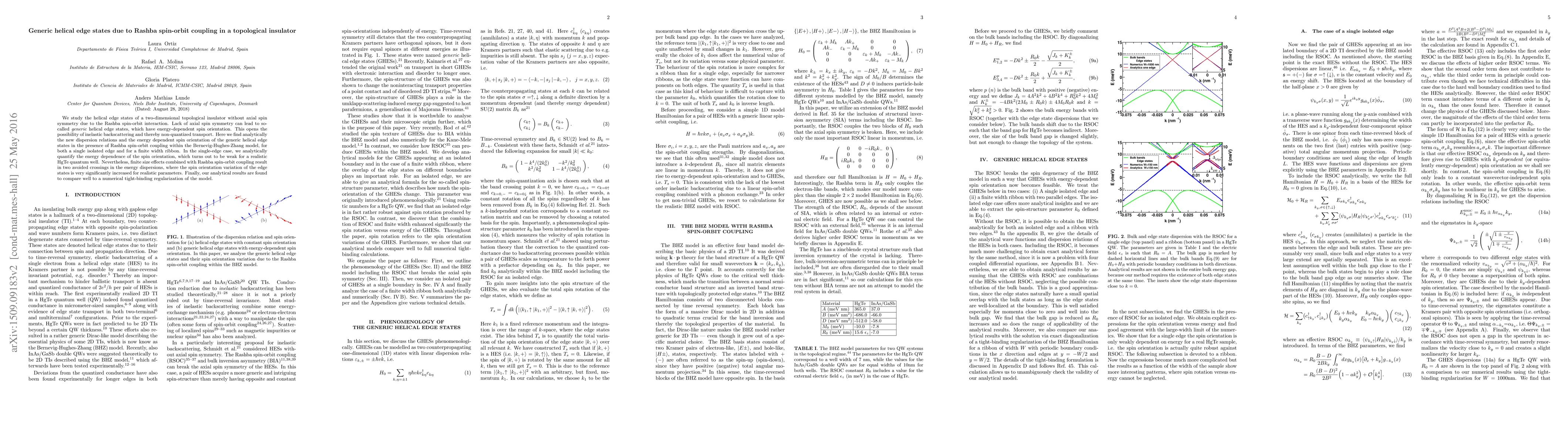 We study the helical edge states of a two-dimensional topological insulator without axial spin symmetry due to the Rashba spin-orbit interaction. Lack of axial spin symmetry can lead to so-called generic helical edge states, which have energy-dependent spin orientation. This opens the possibility of inelastic backscattering and thereby nonquantized transport. Here we find analytically the new dispersion relations and the energy dependent spin orientation of the generic helical edge states in the presence of Rashba spin-orbit coupling within the Bernevig-Hughes-Zhang model, for both a single isolated edge and for a finite width ribbon. In the single-edge case, we analytically quantify the energy dependence of the spin orientation, which turns out to be weak for a realistic HgTe quantum well. Nevertheless, finite size effects combined with Rashba spin-orbit coupling result in two avoided crossings in the energy dispersions, where the spin orientation variation of the edge states is very significantly increased for realistic parameters. Finally, our analytical results are found to compare well to a numerical tight-binding regularization of the model.