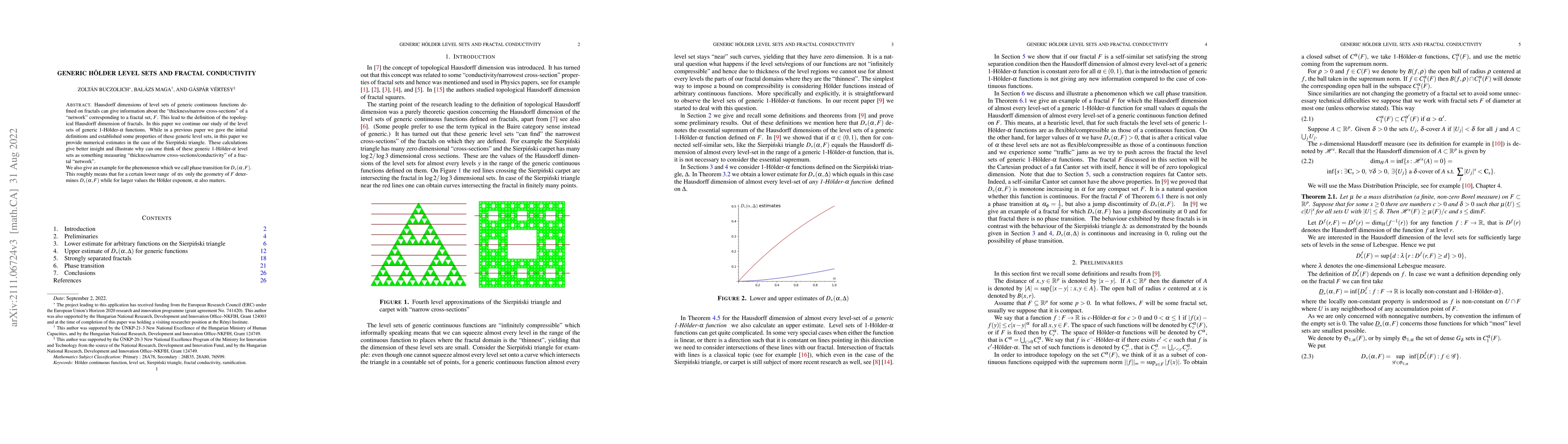 This paper explores the Hausdorff dimensions of level sets for generic 1-Hölder-α functions on fractals, providing numerical estimates for the Sierpiński triangle. It demonstrates how these level sets can measure the "thickness" or "conductivity" of fractal networks and introduces the concept of a phase transition in the dimension of level sets relative to the fractal's geometry and the Hölder exponent.