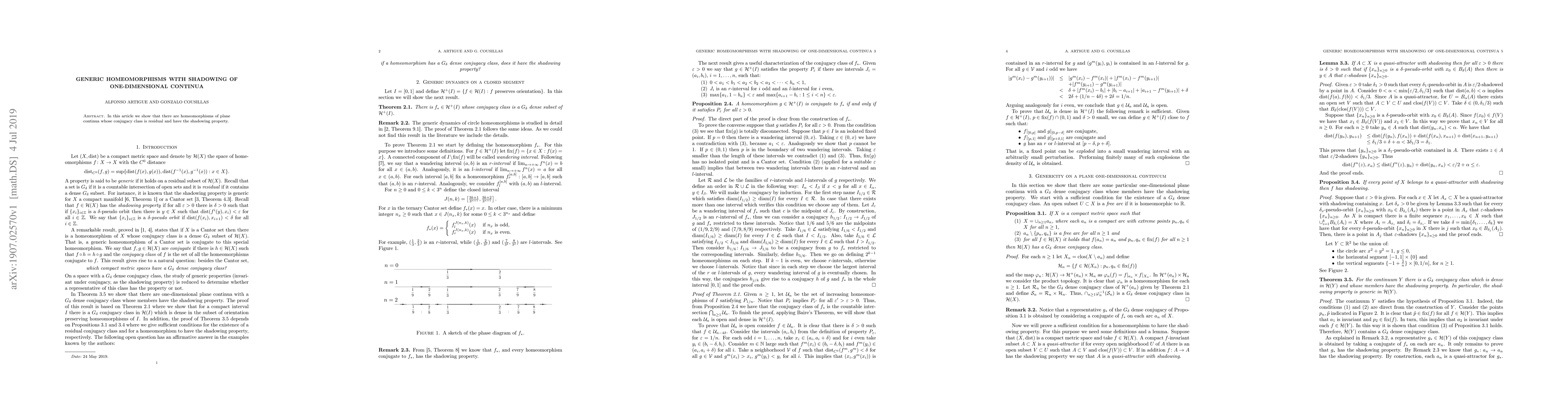 Summary: The paper demonstrates the existence of homeomorphisms of plane continua with residual conjugacy classes and the shadowing property, highlighting their unique dynamical behavior.