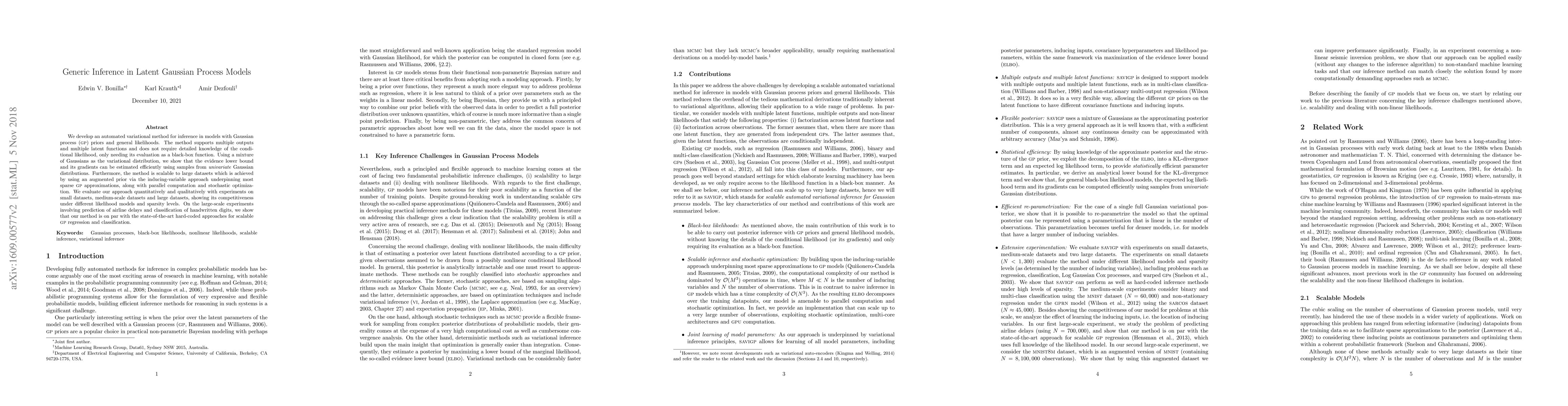 This paper proposes an automated variational inference method for latent Gaussian process models with general likelihoods, supporting multiple outputs and latent functions. The method efficiently scales to large datasets using an augmented prior and stochastic optimization, demonstrating competitive performance on various datasets.