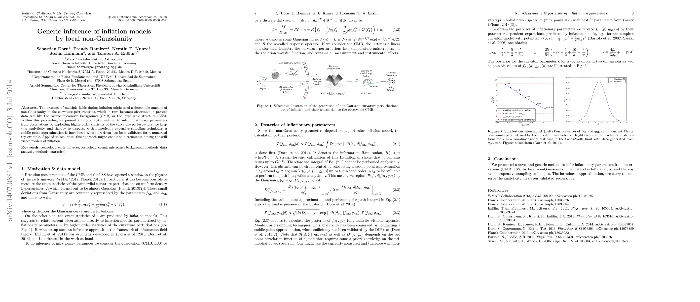The presence of multiple fields during inflation might seed a detectable amount of non-Gaussianity in the curvature perturbations, which in turn becomes observable in present data sets like the cosmic microwave background (CMB) or the large scale structure (LSS). Within this proceeding we present a fully analytic method to infer inflationary parameters from observations by exploiting higher-order statistics of the curvature perturbations. To keep this analyticity, and thereby to dispense with numerically expensive sampling techniques, a saddle-point approximation is introduced whose precision has been validated for a numerical toy example. Applied to real data, this approach might enable to discriminate among the still viable models of inflation.