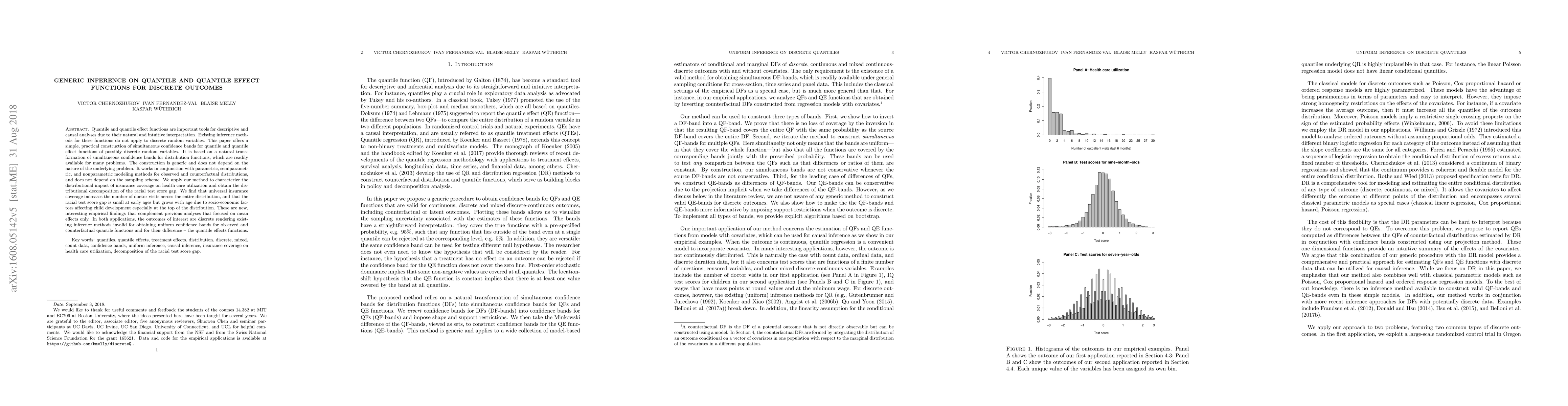 This paper develops a generic method for constructing simultaneous confidence bands for quantile and quantile effect functions applicable to discrete random variables, offering a solution where existing methods fail. It provides empirical insights into the distributional impact of insurance coverage and the racial test score gap, revealing new findings that complement traditional mean-focused analyses.