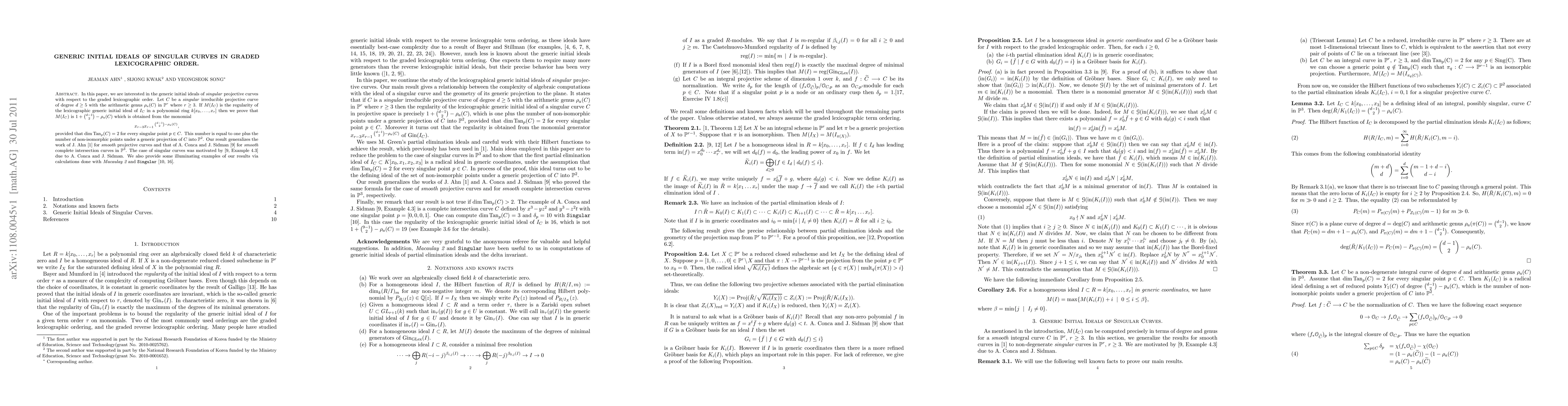 This paper studies the generic initial ideals of singular projective curves under graded lexicographic order, proving that the regularity of the lexicographic generic initial ideal is \(1+\binom{d-1}{2}-\rho_a(C)\), where \(d\) is the degree and \(\rho_a(C)\) the arithmetic genus of the curve \(C\). This generalizes previous results for smooth curves and intersections.
