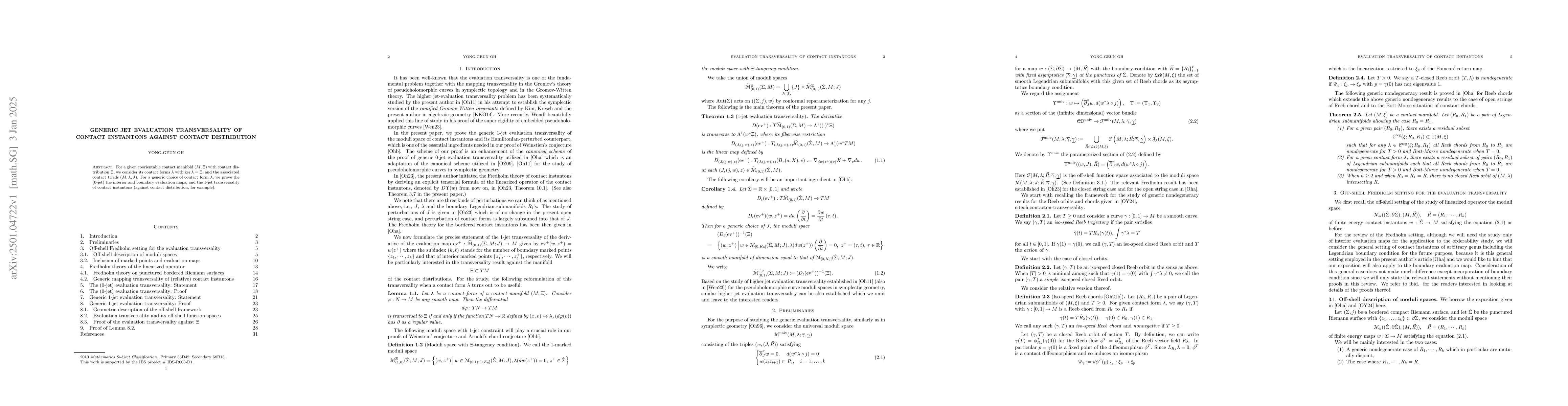 For a given coorientable contact manifold $(M,\Xi)$ with contact distribution $\Xi$, we consider its contact forms $\lambda$ with $\ker \lambda = \Xi$, and the associated contact triads $(M,\lambda, J)$. For a generic choice of contact form $\lambda$, we prove the (0-jet) the interior and boundary evaluation maps, and the 1-jet transversality of contact instantons (against contact distribution, for example).