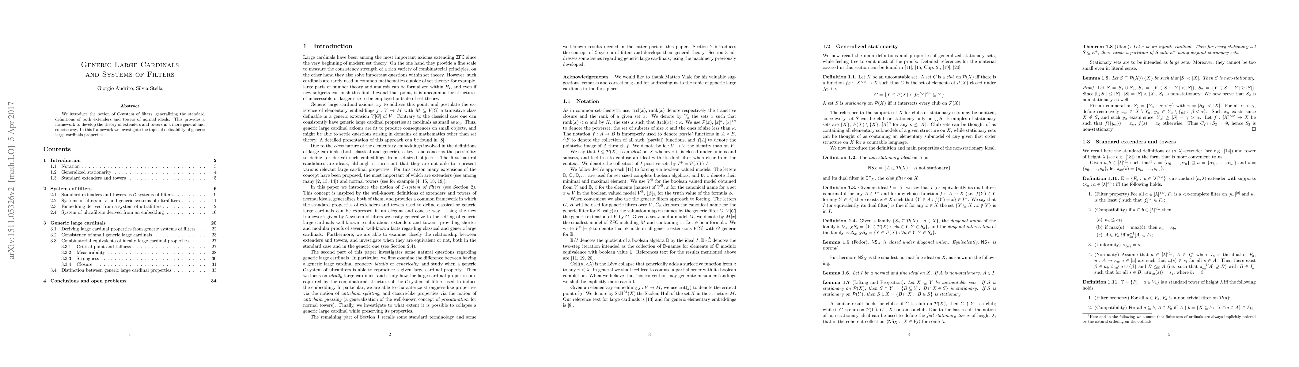 Summary: The paper introduces $\mathcal{C}$-systems of filters, a generalization of extenders and towers of normal ideals, to develop a more concise theory for studying large cardinals. It explores the definability of generic large cardinal properties within this new framework.