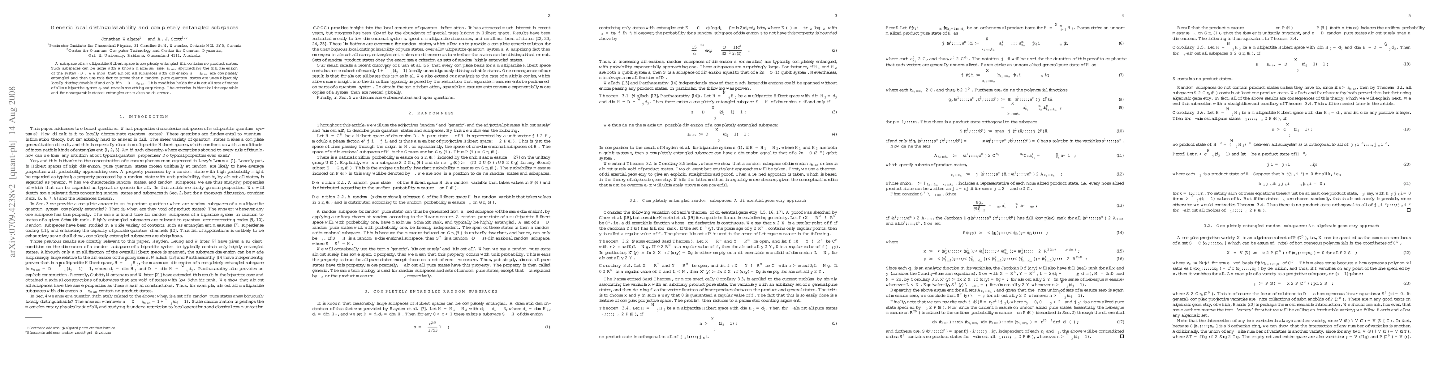 This paper demonstrates that almost all subspaces of a multipartite quantum system with dimension up to the maximum size of completely entangled subspaces are completely entangled. It also proves that n random pure quantum states are unambiguously locally distinguishable if n does not exceed the system's dimension minus the maximum size of completely entangled subspaces, revealing that entanglement does not affect this criterion.