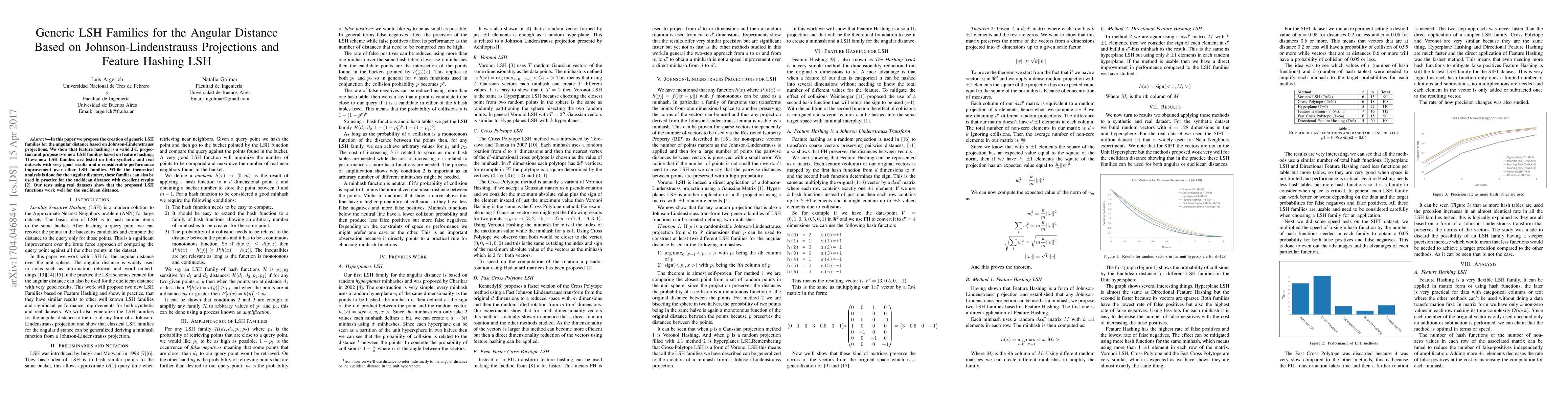This paper proposes two new LSH families based on feature hashing for angular distance, achieving better performance than existing methods, with promising results also for Euclidean distance.