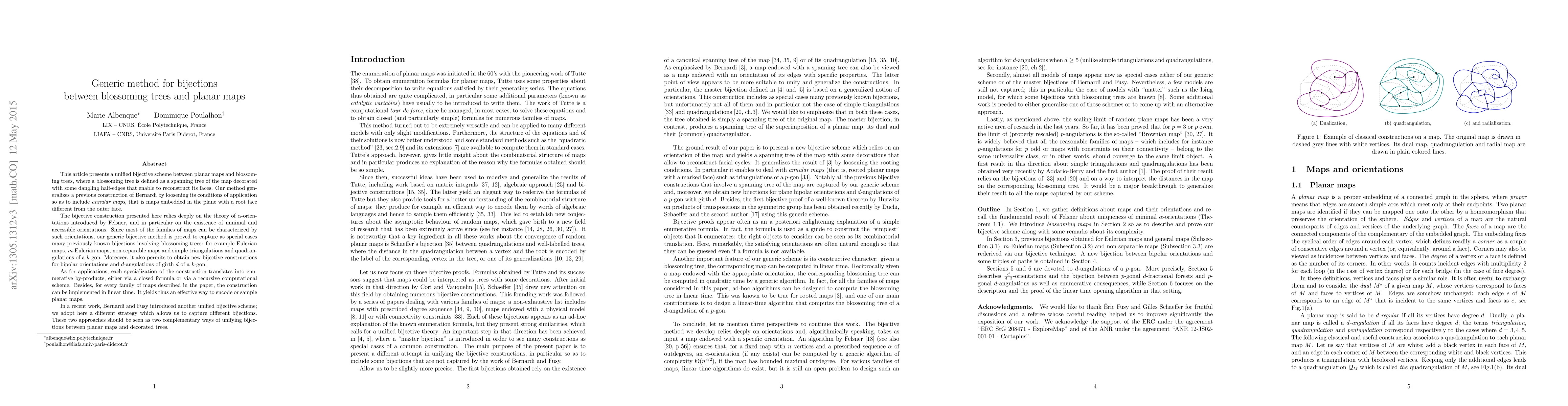 This paper introduces a generalized bijective method between planar maps and blossoming trees, extending Bernardi's prior construction to include annular maps. The method leverages \alpha-orientations and minimal accessible orientations to encompass various map families and yield new bijective constructions, with applications providing enumerative results and efficient computational schemes.