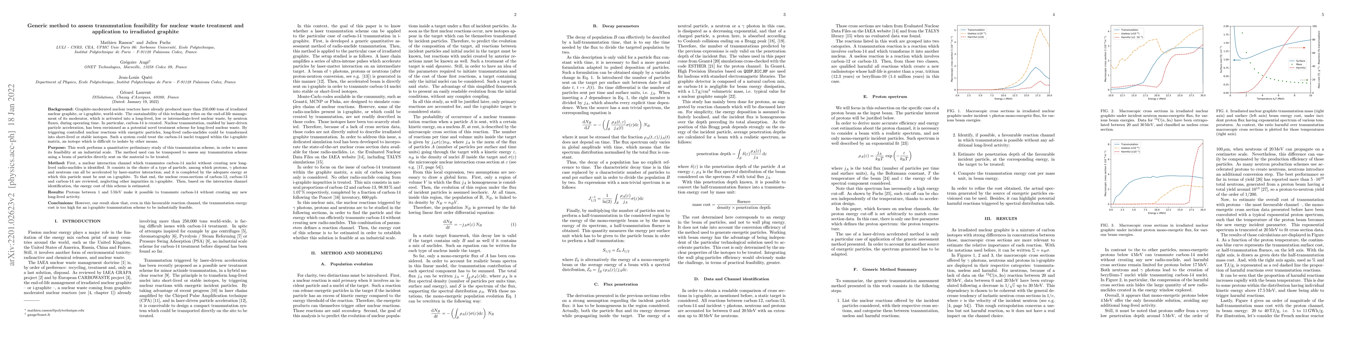 This paper proposes a generic method to evaluate the feasibility of nuclear transmutation for nuclear waste treatment, specifically applied to irradiated graphite. It identifies a suitable interaction channel for transmuting C14 without creating new long-lived radionuclides, but concludes that the energy cost remains prohibitively high for industrial-scale application.