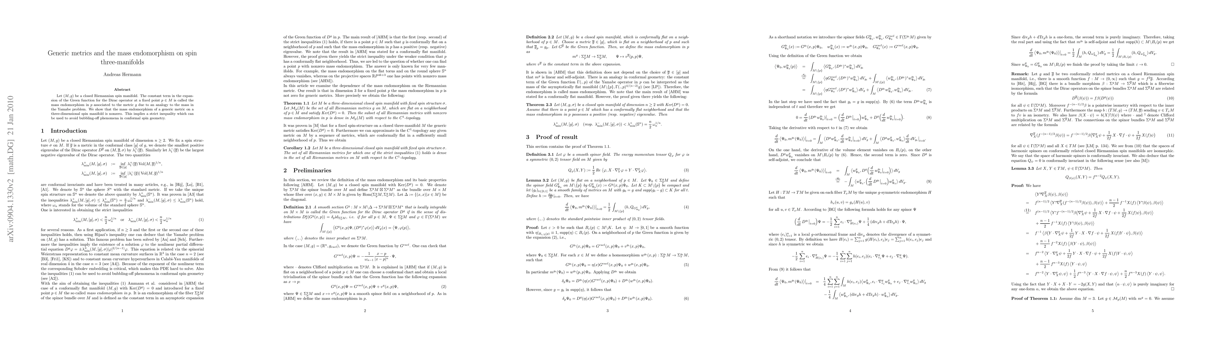 The research paper shows that for generic metrics on 3D spin manifolds, the mass endomorphism is non-zero, which can be used to avoid bubbling-off phenomena in conformal spin geometry.
