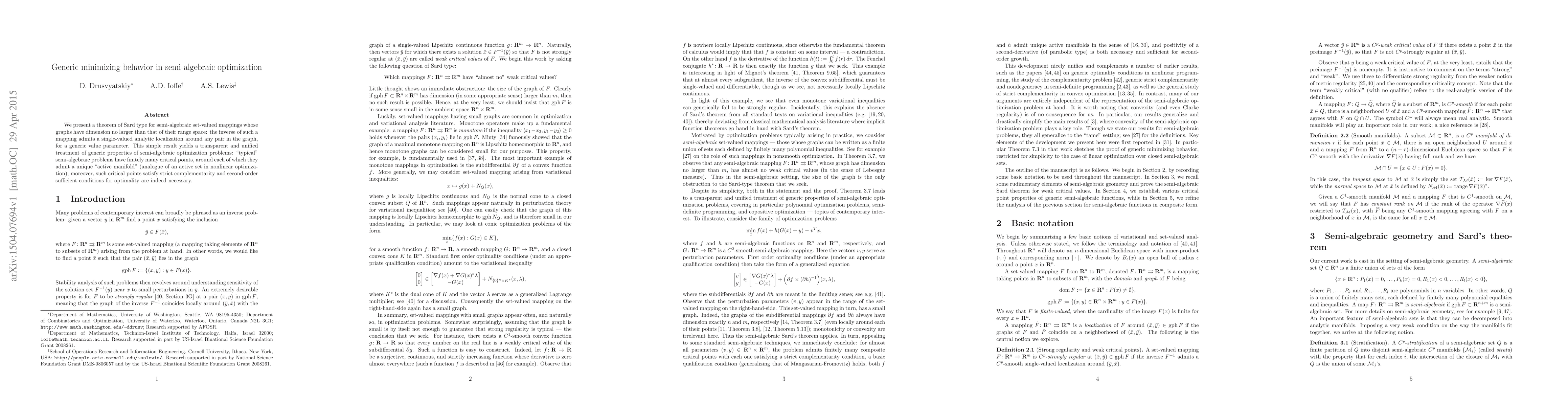 We present a theorem of Sard type for semi-algebraic set-valued mappings whose graphs have dimension no larger than that of their range space: the inverse of such a mapping admits a single-valued analytic localization around any pair in the graph, for a generic value parameter. This simple result yields a transparent and unified treatment of generic properties of semi-algebraic optimization problems: "typical" semi-algebraic problems have finitely many critical points, around each of which they admit a unique "active manifold" (analogue of an active set in nonlinear optimization); moreover, such critical points satisfy strict complementarity and second-order sufficient conditions for optimality are indeed necessary.