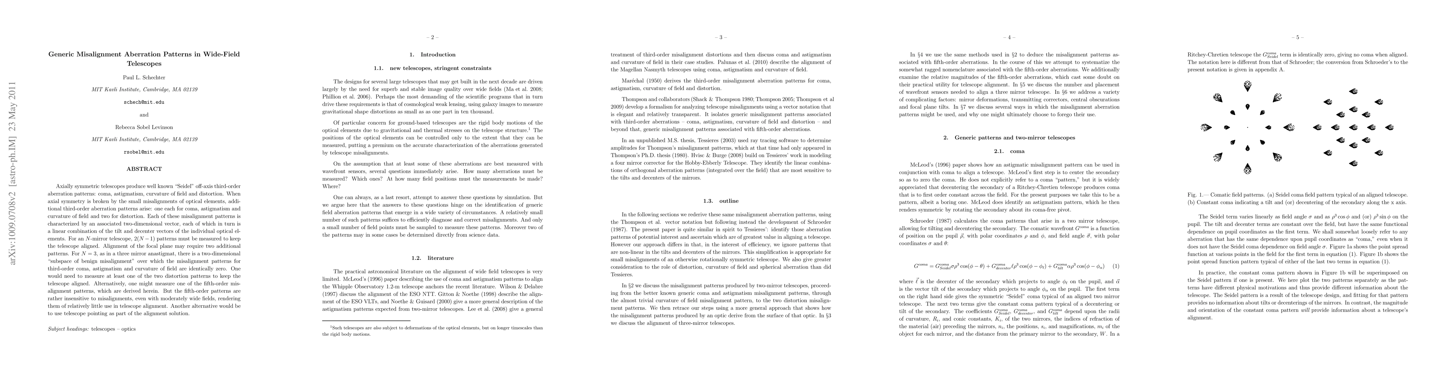 This paper identifies additional third-order aberration patterns arising from misalignments in axially symmetric telescopes, detailing the associated two-dimensional vectors for each pattern. For a three-mirror anastigmat, it highlights the limited utility of fifth-order misalignment patterns and suggests using telescope pointing as part of the alignment solution.
