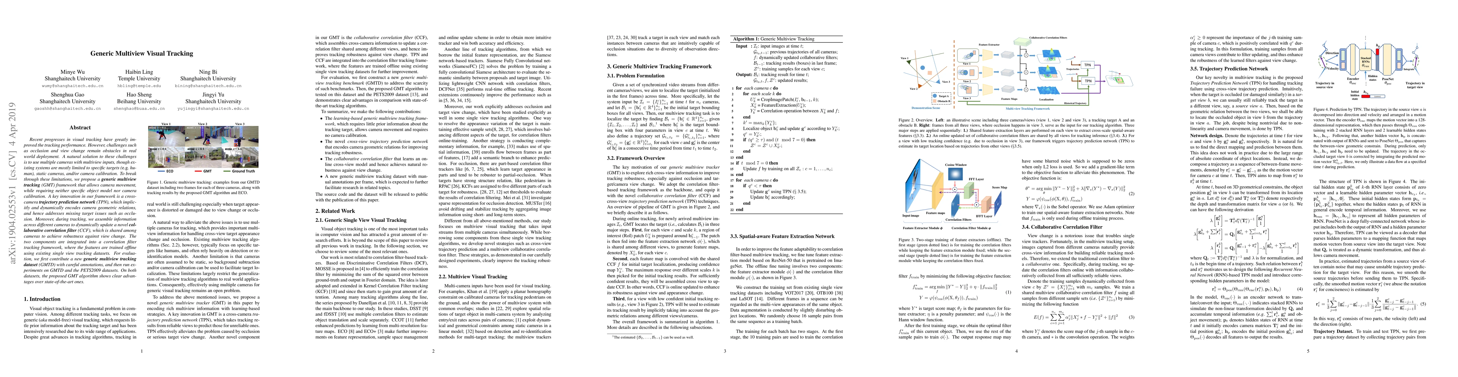 The paper proposes a generic multiview visual tracking framework (GMT) that handles challenges like occlusion and view changes without requiring specific object models or camera calibration. It introduces a cross-camera trajectory prediction network and a collaborative correlation filter to dynamically update tracking across moving cameras, demonstrating superior performance on new and existing multiview tracking datasets.