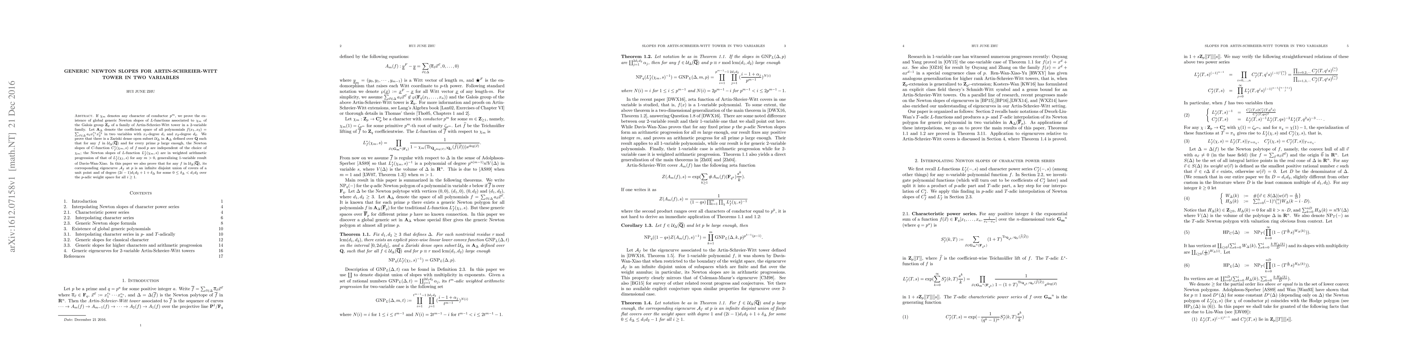 This research proves that for any high-degree polynomial in two variables over rationals, the Newton slopes of certain character power series and L-functions associated with it become independent of character choice and follow a weighted arithmetic progression, as p (a prime) grows large.