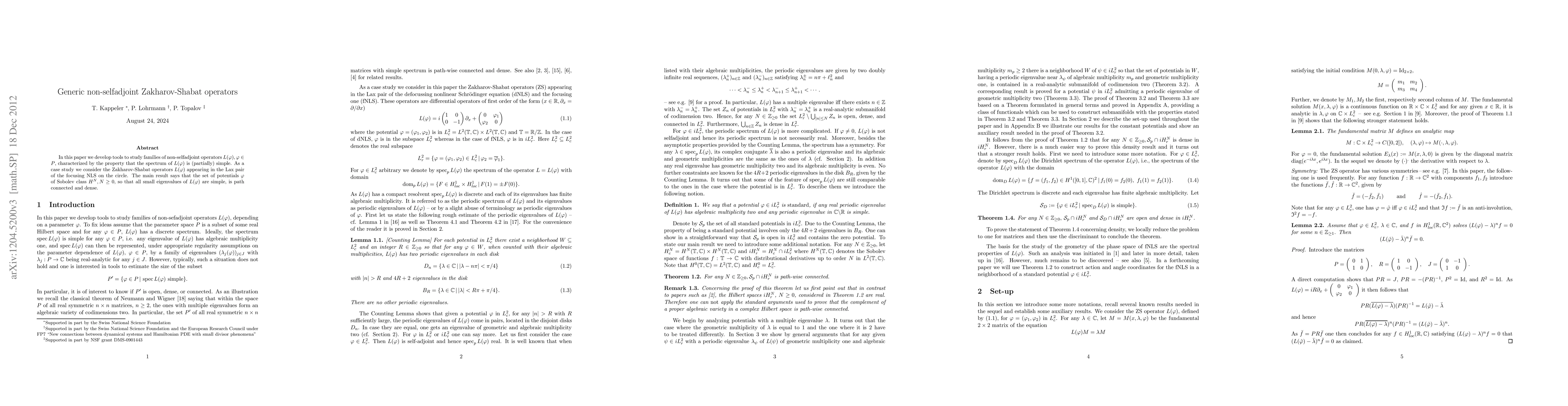 This paper develops methods to analyze non-selfadjoint Zakharov-Shabat operators with partially simple spectra, focusing on those arising in the Lax pair for the focusing NLS on the circle. It proves that potentials yielding simple small eigenvalues are path connected and dense in the Sobolev class $H^N$.