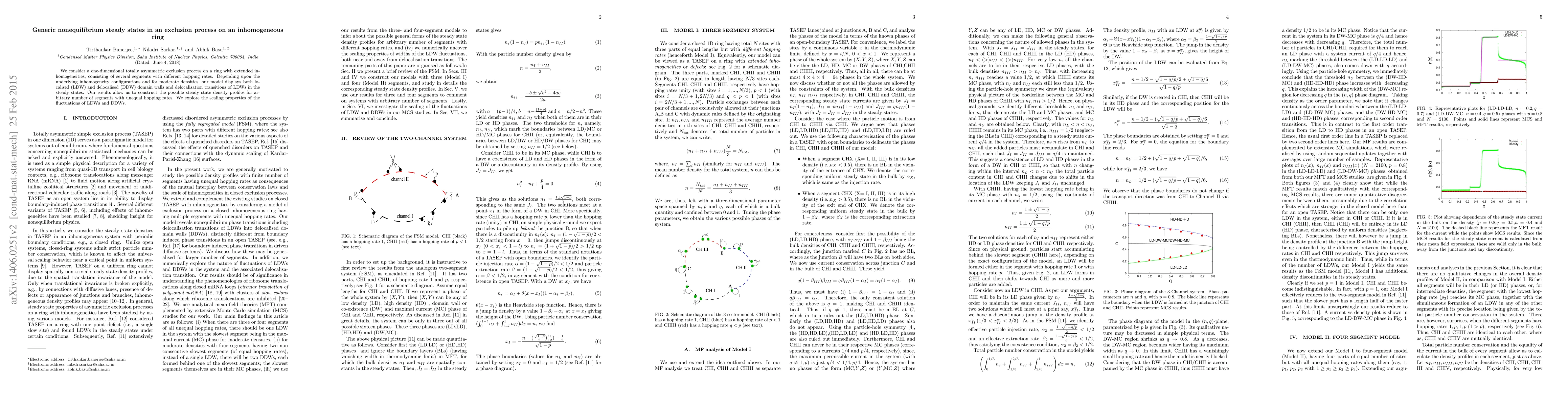 We consider a one-dimensional totally asymmetric exclusion process on a ring with extended inhomogeneities, consisting of several segments with different hopping rates. Depending upon the underlying inhomogeneity configurations and for moderate densities, our model displays both localised (LDW) and delocalised (DDW) domain walls and delocalisation transitions of LDWs in the steady states. Our results allow us to construct the possible steady state density profiles for an arbitrary number of segments with unequal hopping rates. We explore the scaling properties of the fluctuations of LDWs and DDWs.