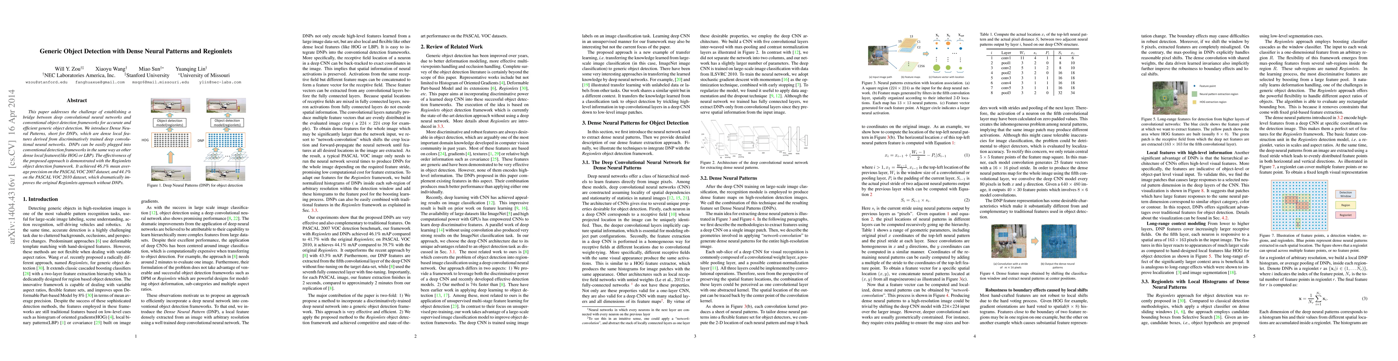 This paper proposes Dense Neural Patterns (DNPs) to enhance generic object detection by integrating discriminatively trained deep convolutional neural networks into conventional detection frameworks. The approach significantly improves mean average precision on PASCAL VOC datasets, demonstrating the effectiveness of DNPs.