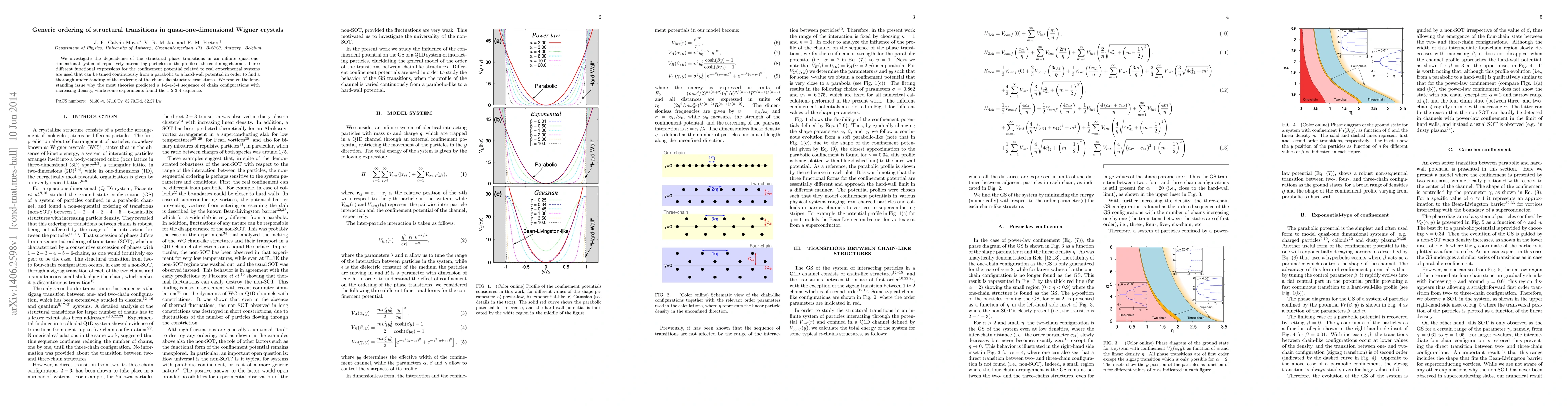 This paper explores the structural phase transitions in quasi-one-dimensional Wigner crystals under varying confinement potentials, resolving the discrepancy between theoretical predictions and experimental observations regarding the sequence of chain configurations with increasing density. The study uses three different confinement potentials to understand the ordering of structural transitions.