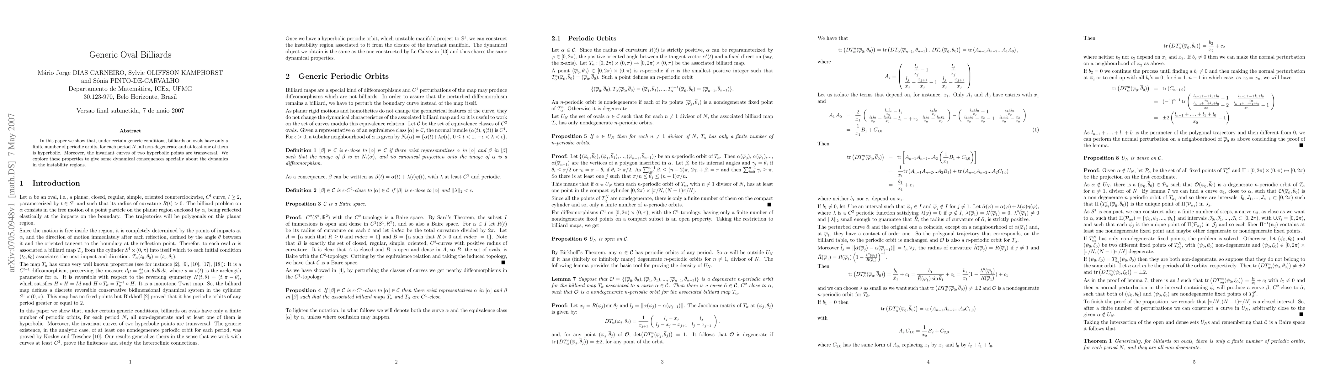 This paper demonstrates that under specific conditions, billiards on ovals possess a finite number of periodic orbits, with each orbit being non-degenerate and at least one being hyperbolic. The study also reveals that the invariant curves of two hyperbolic points intersect transversally, leading to insights into the dynamics within instability regions.