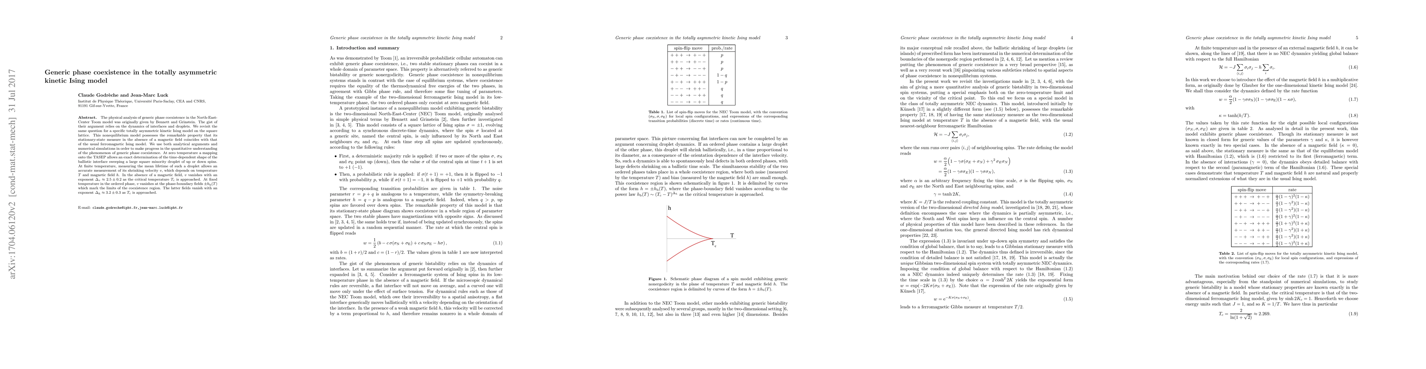 The physical analysis of generic phase coexistence in the North-East-Center Toom model was originally given by Bennett and Grinstein. The gist of their argument relies on the dynamics of interfaces and droplets. We revisit the same question for a specific totally asymmetric kinetic Ising model on the square lattice. This nonequilibrium model possesses the remarkable property that its stationary-state measure in the absence of a magnetic field coincides with that of the usual ferromagnetic Ising model. We use both analytical arguments and numerical simulations in order to make progress in the quantitative understanding of the phenomenon of generic phase coexistence. At zero temperature a mapping onto the TASEP allows an exact determination of the time-dependent shape of the ballistic interface sweeping a large square minority droplet of up or down spins. At finite temperature, measuring the mean lifetime of such a droplet allows an accurate measurement of its shrinking velocity $v$, which depends on temperature $T$ and magnetic field $h$. In the absence of a magnetic field, $v$ vanishes with an exponent $\Delta_v\approx2.5\pm0.2$ as the critical temperature $T_c$ is approached. At fixed temperature in the ordered phase, $v$ vanishes at the phase-boundary fields $\pm h_{\rm b}(T)$ which mark the limits of the coexistence region. The latter fields vanish with an exponent $\Delta_h\approx3.2\pm0.3$ as $T_c$ is approached.