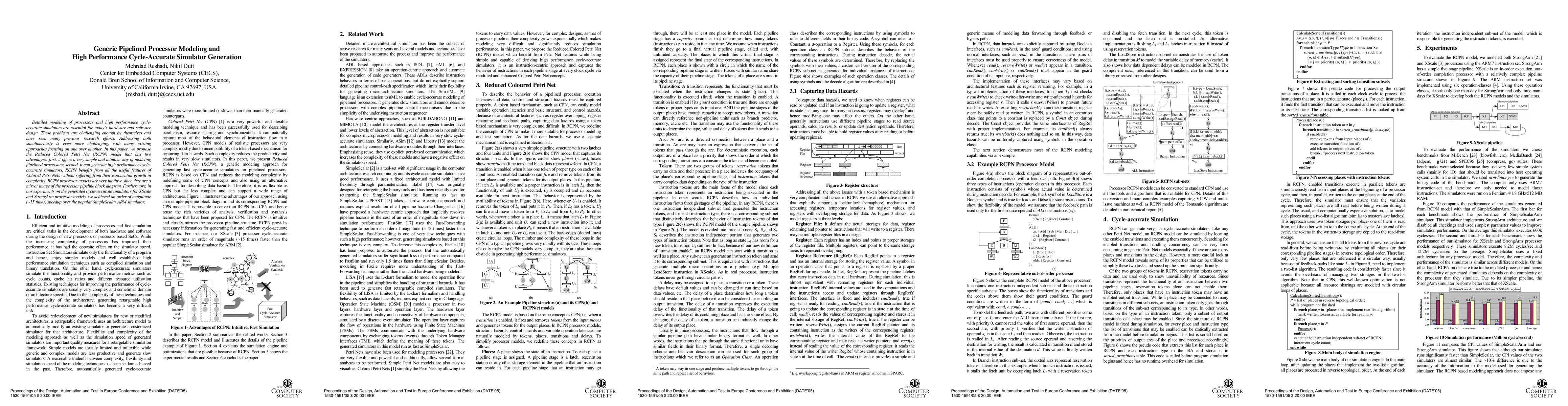 This paper proposes the Reduced Colored Petri Net (RCPN) model for simple and intuitive pipelined processor modeling, which also generates high-performance cycle-accurate simulators, achieving a ~15-fold speedup over the SimpleScalar ARM simulator in experiments with XScale and StrongArm processors.