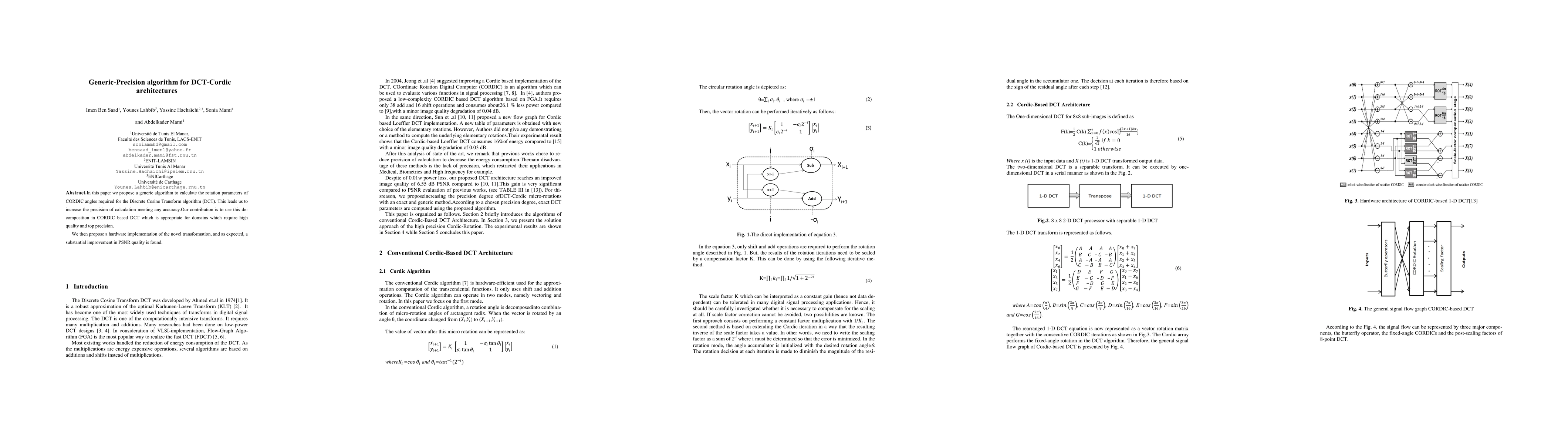 The paper proposes a generic algorithm to calculate rotation parameters of CORDIC angles required for the Discrete Cosine Transform (DCT) algorithm, enhancing precision for high-quality applications like medical or biometrics domains.