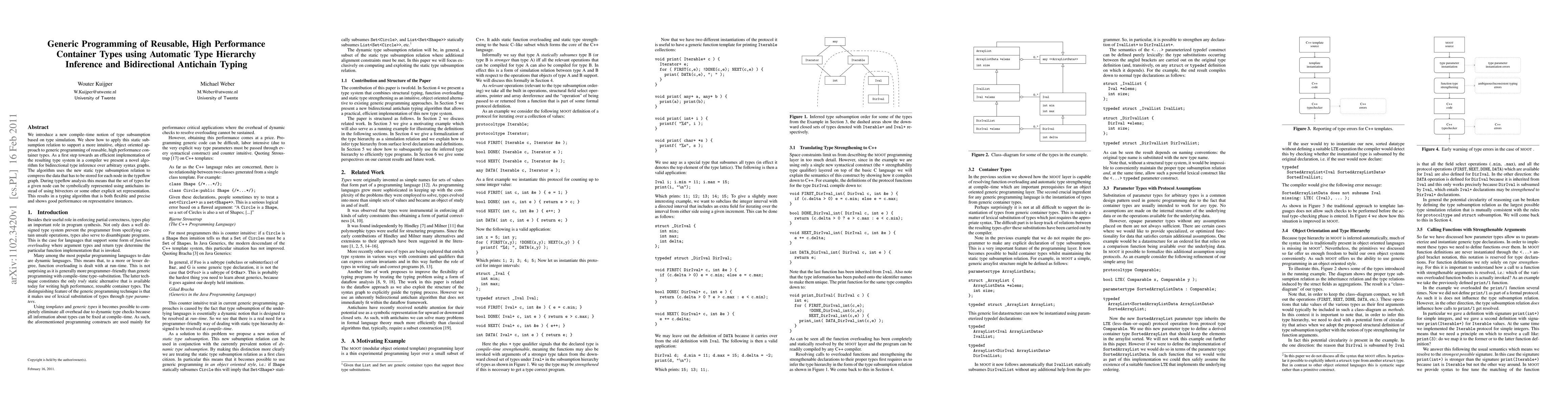 This paper proposes a new compile-time type subsumption concept based on type simulation to enhance generic programming of high-performance container types. It introduces a bidirectional antichain typing algorithm for efficient type inference, enabling symbolic representation of node types and improving performance.