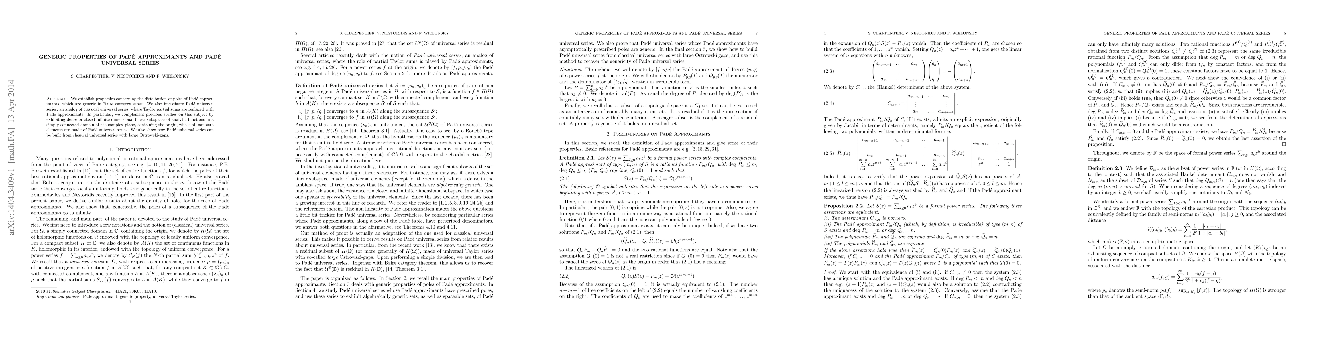 This paper explores the generic properties of Padé approximants in terms of their pole distribution and introduces Padé universal series, which use Padé approximants instead of Taylor partial sums. It demonstrates dense or closed infinite-dimensional subspaces of analytic functions containing only Padé universal series and shows how these can be constructed from classical universal series with significant Ostrowski-gaps.
