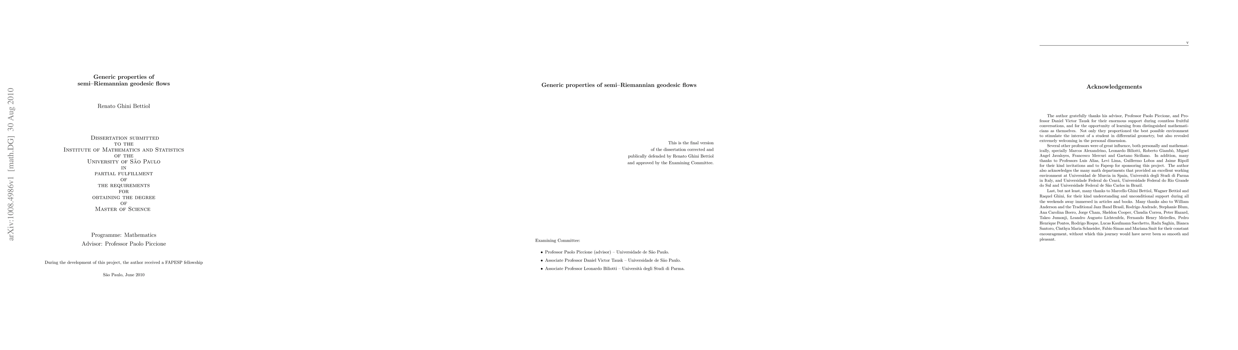 This paper investigates the generic properties of semi-Riemannian geodesic flows on smooth manifolds, proving a new version of the Bumpy Metric Theorem and demonstrating the genericity of metrics without degenerate geodesics. It extends existing results to cases where geodesic endpoints lie on a compact submanifold, leading to generic non-conjugacy and non-focality.