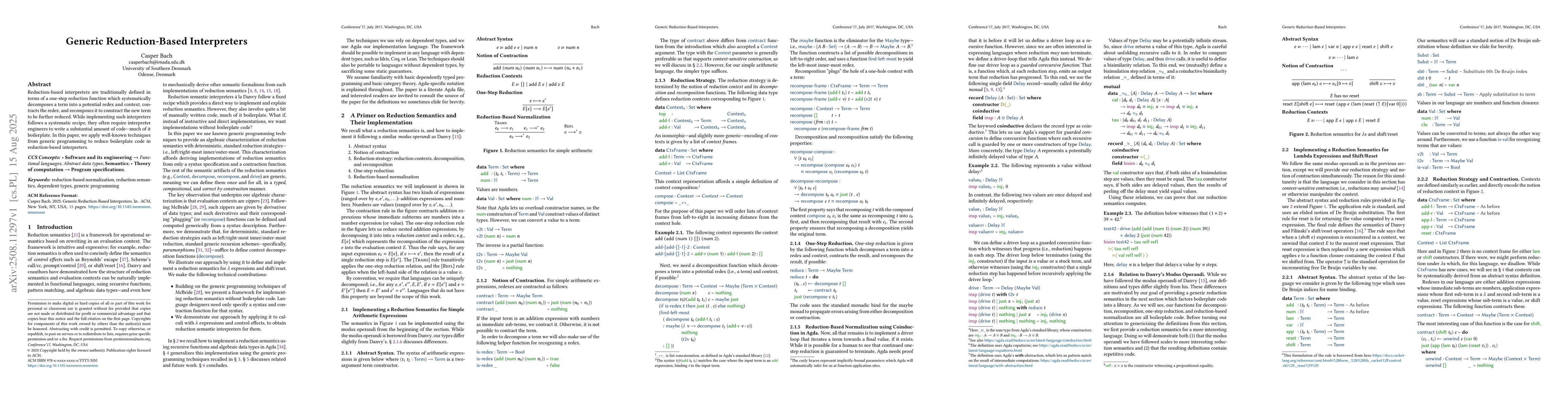 Reduction-based interpreters are traditionally defined in terms of a one-step reduction function which systematically decomposes a term into a potential redex and context, contracts the redex, and recomposes it to construct the new term to be further reduced. While implementing such interpreters follows a systematic recipe, they often require interpreter engineers to write a substantial amount of code -- much of it boilerplate. In this paper, we apply well-known techniques from generic programming to reduce boilerplate code in reduction-based interpreters.