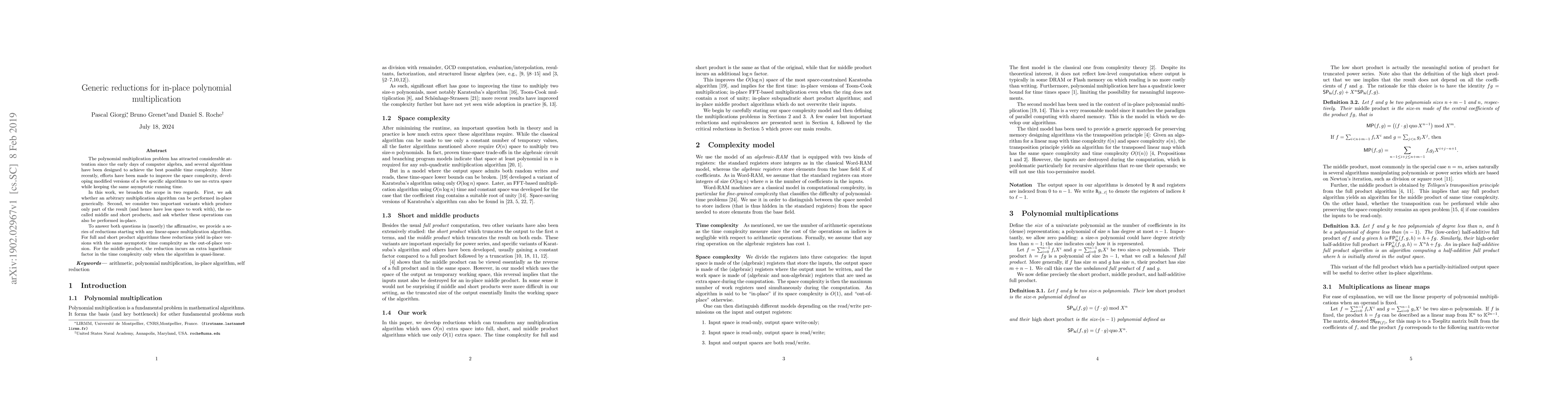 The polynomial multiplication problem has attracted considerable attention since the early days of computer algebra, and several algorithms have been designed to achieve the best possible time complexity. More recently, efforts have been made to improve the space complexity, developing modified versions of a few specific algorithms to use no extra space while keeping the same asymptotic running time. In this work, we broaden the scope in two regards. First, we ask whether an arbitrary multiplication algorithm can be performed in-place generically. Second, we consider two important variants which produce only part of the result (and hence have less space to work with), the so-called middle and short products, and ask whether these operations can also be performed in-place. To answer both questions in (mostly) the affirmative, we provide a series of reductions starting with any linear-space multiplication algorithm. For full and short product algorithms these reductions yield in-place versions with the same asymptotic time complexity as the out-of-place version. For the middle product, the reduction incurs an extra logarithmic factor in the time complexity only when the algorithm is quasi-linear.
