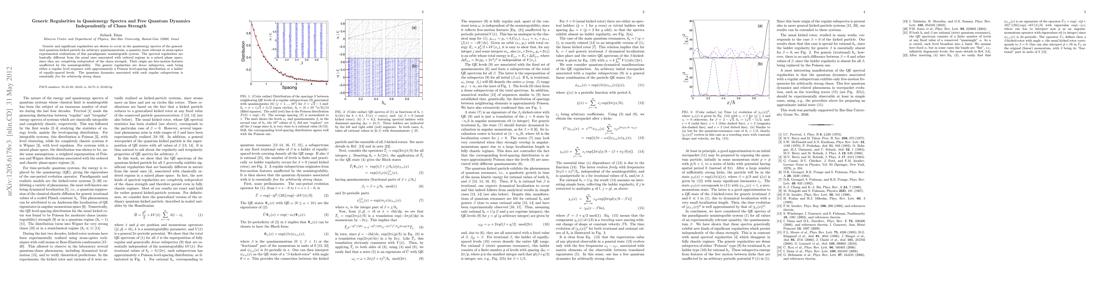 This paper reveals generic regularities in quasienergy spectra of the quantum kicked particle, independent of chaos strength. The regularities, dense subspectra of either Poisson-distributed or equally-spaced levels, originate from free-motion features unaffected by nonintegrability, indicating free quantum dynamics regardless of chaos strength.