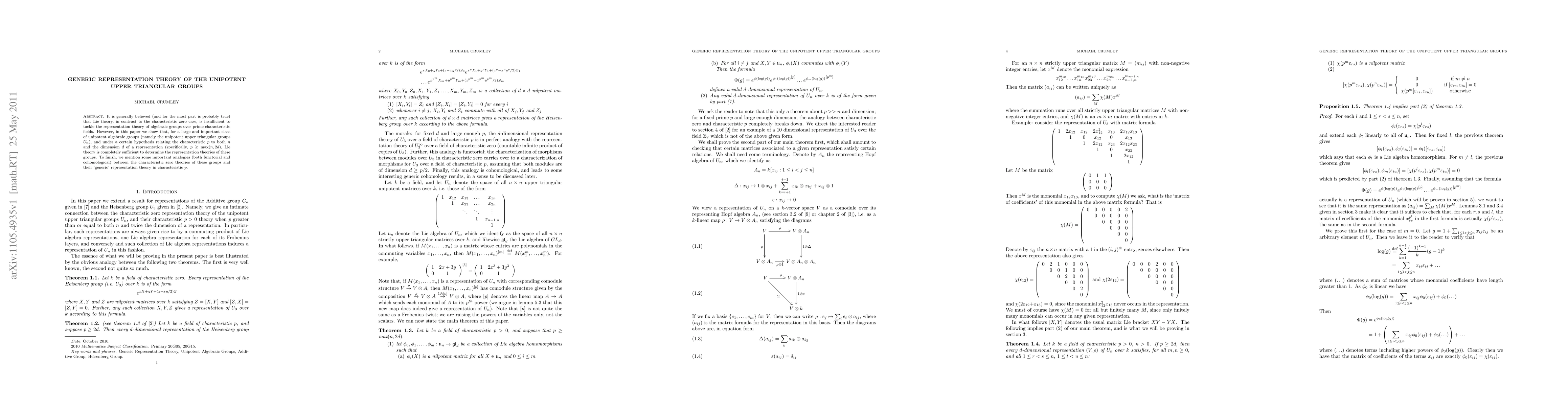 It is generally believed (and for the most part is probably true) that Lie theory, in contrast to the characteristic zero case, is insufficient to tackle the representation theory of algebraic groups over prime characteristic fields. However, in this paper we show that, for a large and important class of unipotent algebraic groups (namely the unipotent upper triangular groups $U_n$), and under a certain hypothesis relating the characteristic $p$ to both $n$ and the dimension $d$ of a representation (specifically, $p \geq \text{max}(n,2d)$), Lie theory is completely sufficient to determine the representation theory of these groups. To finish, we mention some important analogies (both functorial and cohomological) between the characteristic zero theories of these groups and their `generic' representation theory in characteristic $p$.
