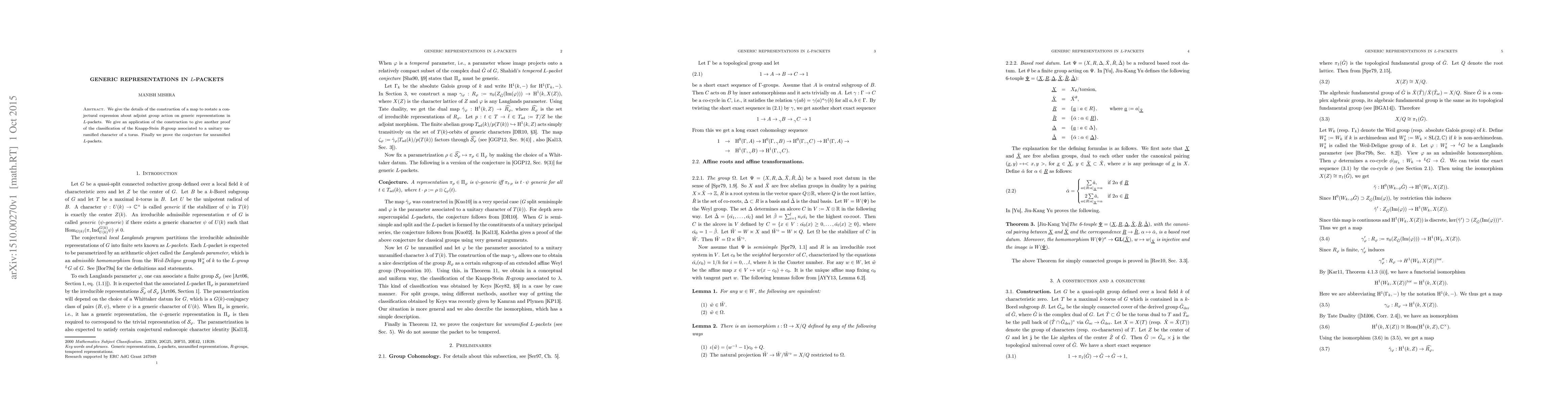 The paper introduces a novel approach to understanding generic representations in L-packets through a constructed map and provides a proof for a conjecture concerning R-groups in the unramified case.