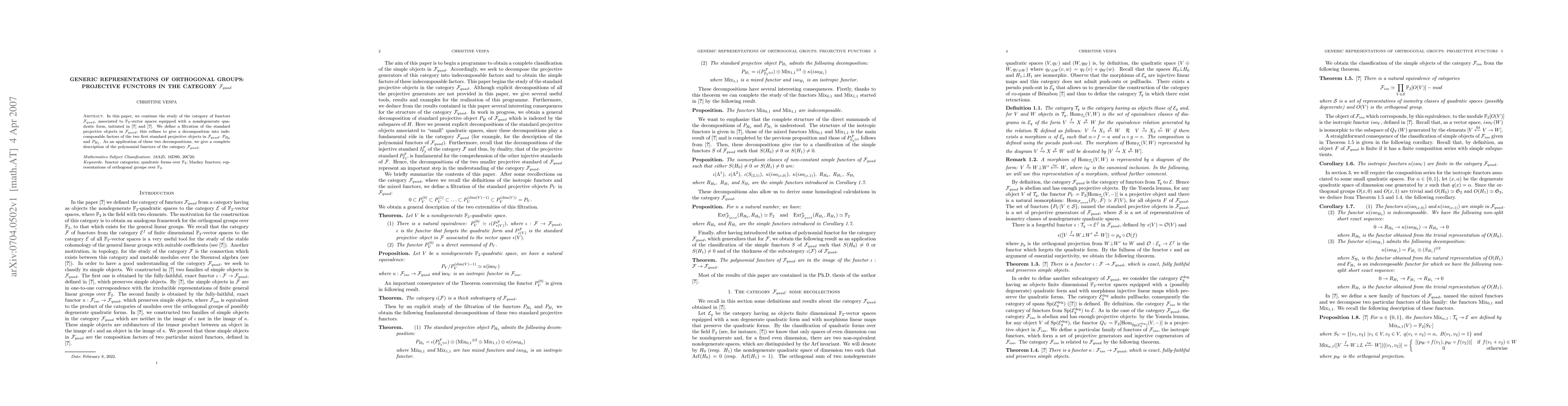 This paper studies the category Fquad of functors associated with F_2-vector spaces with quadratic forms, defining a filtration of standard projective objects and decomposing the first two projective objects into indecomposable factors. The results enable a complete description of polynomial functors in Fquad.