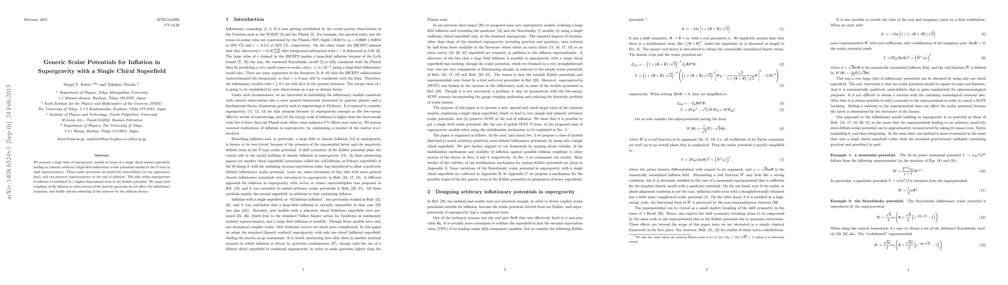 We propose a large class of supergravity models in terms of a single chiral matter superfield, leading to (almost) arbitrary single-field inflationary scalar potentials similar to the F-term in rigid supersymmetry. Those scalar potentials are positively semi-definite (in our approximation), and can preserve supersymmetry at the end of inflation. The only scalar superpartner of inflaton is stabilized by a higher-dimensional term in the Kahler potential. We argue that couplings of the inflaton to other sectors of the particle spectrum do not affect the inflationary dynamics, and briefly discuss reheating of the universe by the inflaton decays.