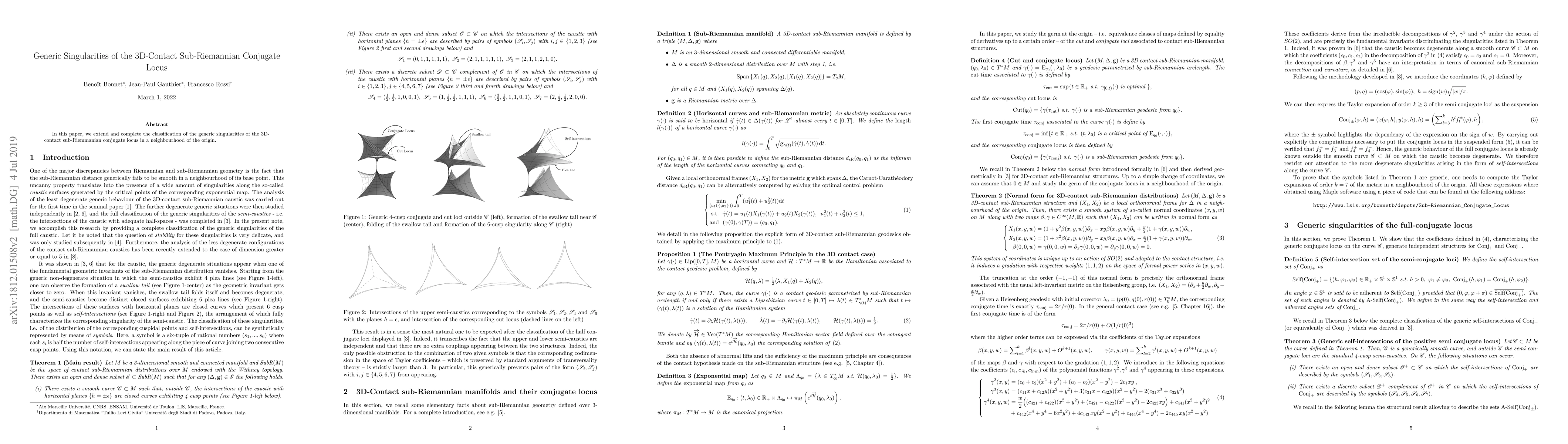 In this paper, we extend and complete the classification of the generic singularities of the 3D-contact sub-Riemmanian conjugate locus in a neighbourhood of the origin.