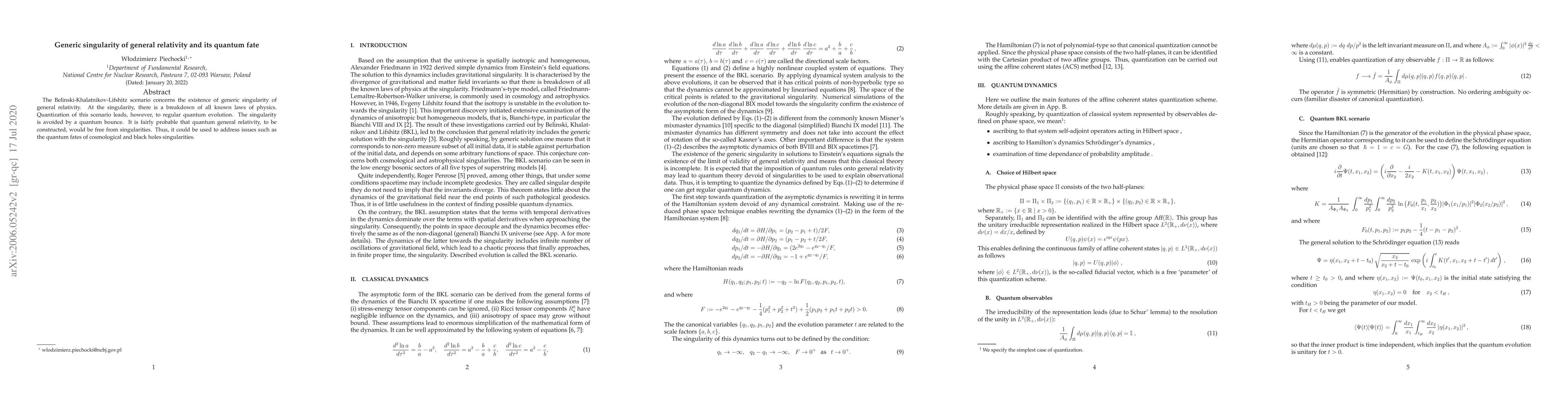 The Belinski-Khalatnikov-Lifshitz scenario concerns the existence of generic singularity of general relativity. At the singularity, there is a breakdown of all known laws of physics. Quantization of this scenario leads, however, to regular quantum evolution. The singularity is avoided by a quantum bounce. It is fairly probable that quantum general relativity, to be constructed, would be free from singularities. Thus, it could be used to address issues such as the quantum fates of cosmological and black holes singularities.