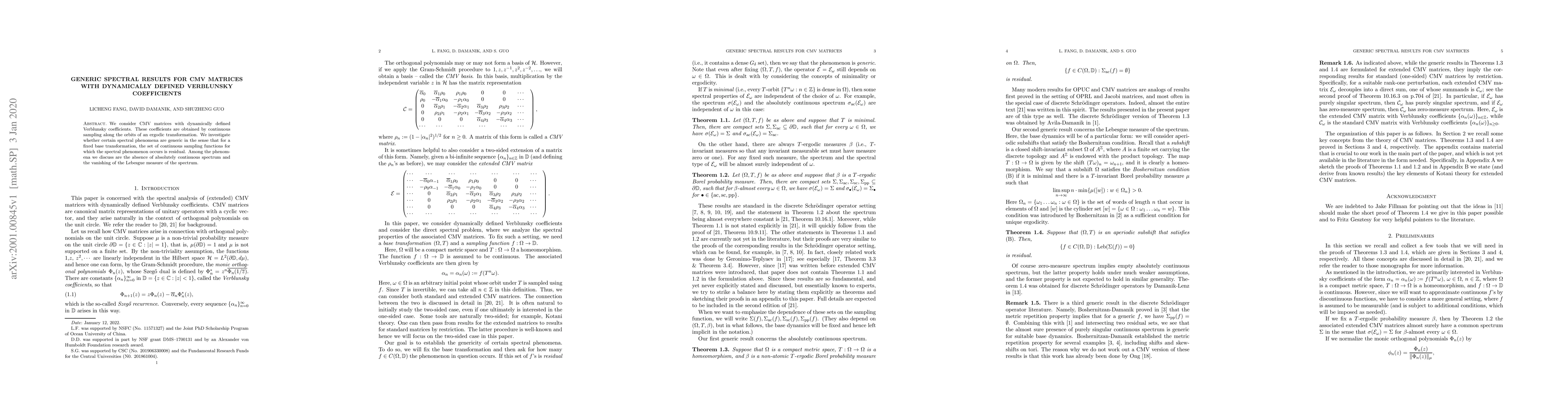 Summary: This paper examines CMV matrices with dynamically defined Verblunsky coefficients generated through continuous sampling of ergodic transformations, focusing on whether certain spectral phenomena, such as the absence of absolutely continuous spectrum, are generic and occur with residual probability for specific sampling functions.